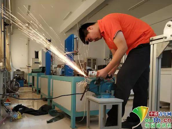 图为实践队员切割配件。中国青年网通讯员 陈果等人提供