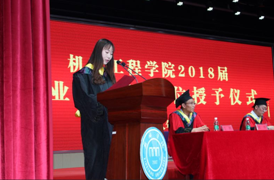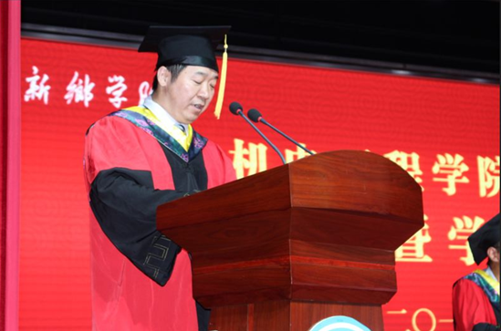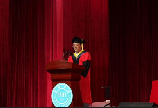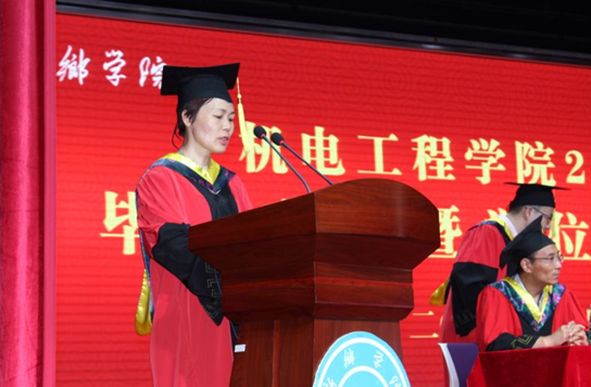 赵波教授作为教师代表发言,他希望毕业生无论走到那里要有感恩心、责任心、自信心,在各个领域力求卓越,追求创新,用实际行动为母校增光添彩。