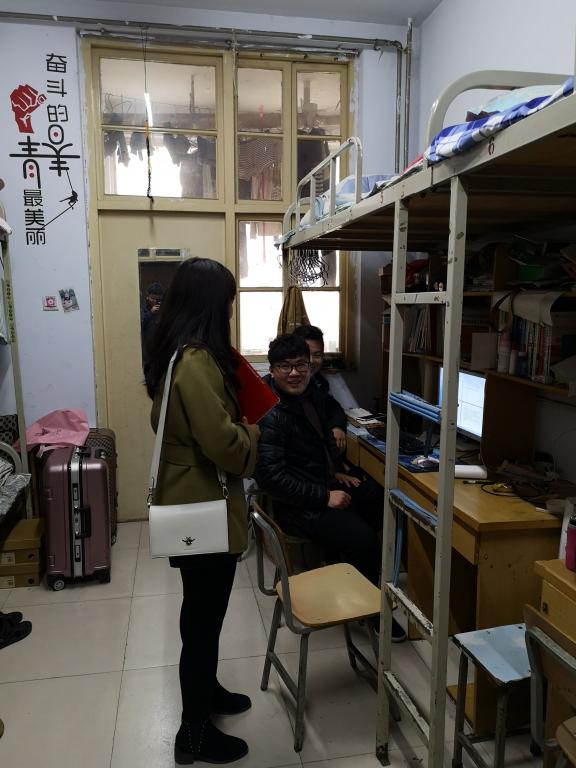 为更全面了解我院学生寝室生活情况、强化学生宿舍安全管理,给同学们营造一个更加文明、卫生、安全的生活环境,2月26日下午,我院领导对学生宿舍进行了随机走访。