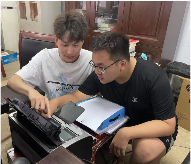 2022级机器人工程1班学生检查打印机故障