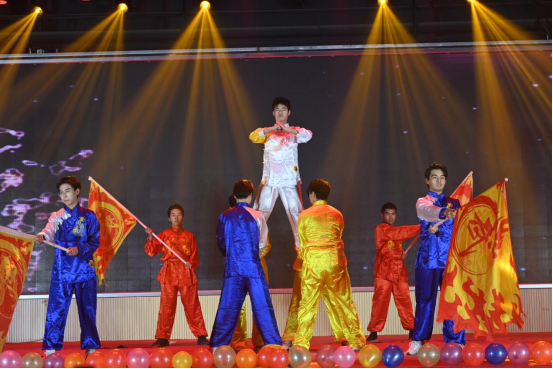 一段精彩的爵士舞拉开了晚会序幕。歌曲《庆功酒》抒发满心的豪情与喜悦;武术《武林风》表现无限的力量与精神;合唱《祖国不会忘记》表达满腔的热血与方刚;相声《智取威虎山》和小品《甄嬛后传》传递轻松的欢乐与笑声;古典舞《如梦令》将“溪亭日暮、藕花深处”的唯美词韵演绎的淋漓尽致;孙中雯老师作词、刘翔老师作曲并演唱的歌曲《小草》,以吉他弹唱的形式呈现,动听的旋律,富有哲理并催人向上的歌词,令人心旷神怡,充满美好的向往。学院党委副书记陈云飞朗诵的《将进酒》,抑扬顿挫,富有磁性的声音,生动呈现了李白诗歌中的意境和情感,将诗歌中豪放,豁达等情感传递给观众,让大家深刻感受到了诗歌的震撼力和感染力。全体学工教师献唱的歌曲《NEW BOY》和全新填词的《奉献》将晚会推向了高潮。