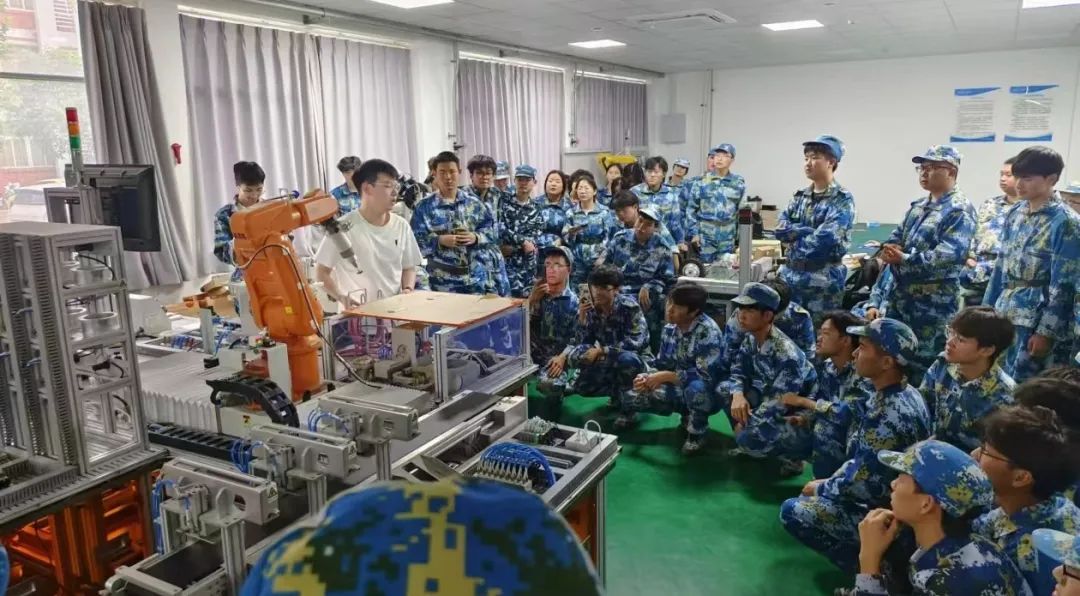 在实验室参观活动中,学院2021级机器人工程专业的学长担任本次实验室参观活动的讲解员,他带领新生们走进了机器人工业生产线模拟区。在这里,新生们亲眼见证了机器人协同工作完成生产过程,学长结合自身学习经历和实践经验,生动讲解了机器人工业生产线的工作原理、技术难点及未来发展趋势,让新生们对机器人工程专业的就业前景充满了信心。