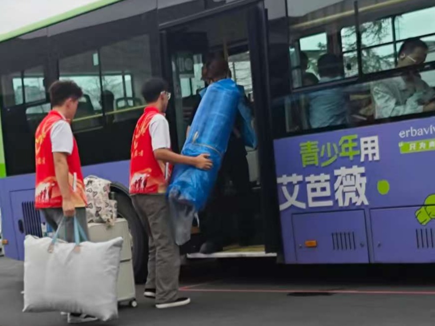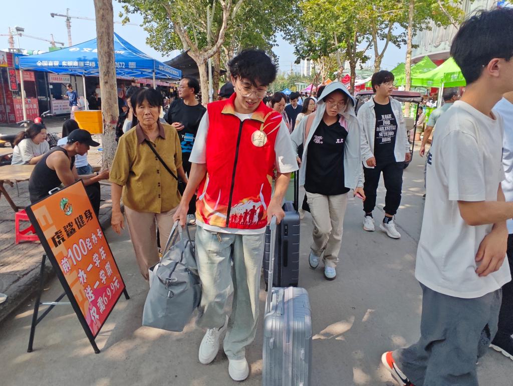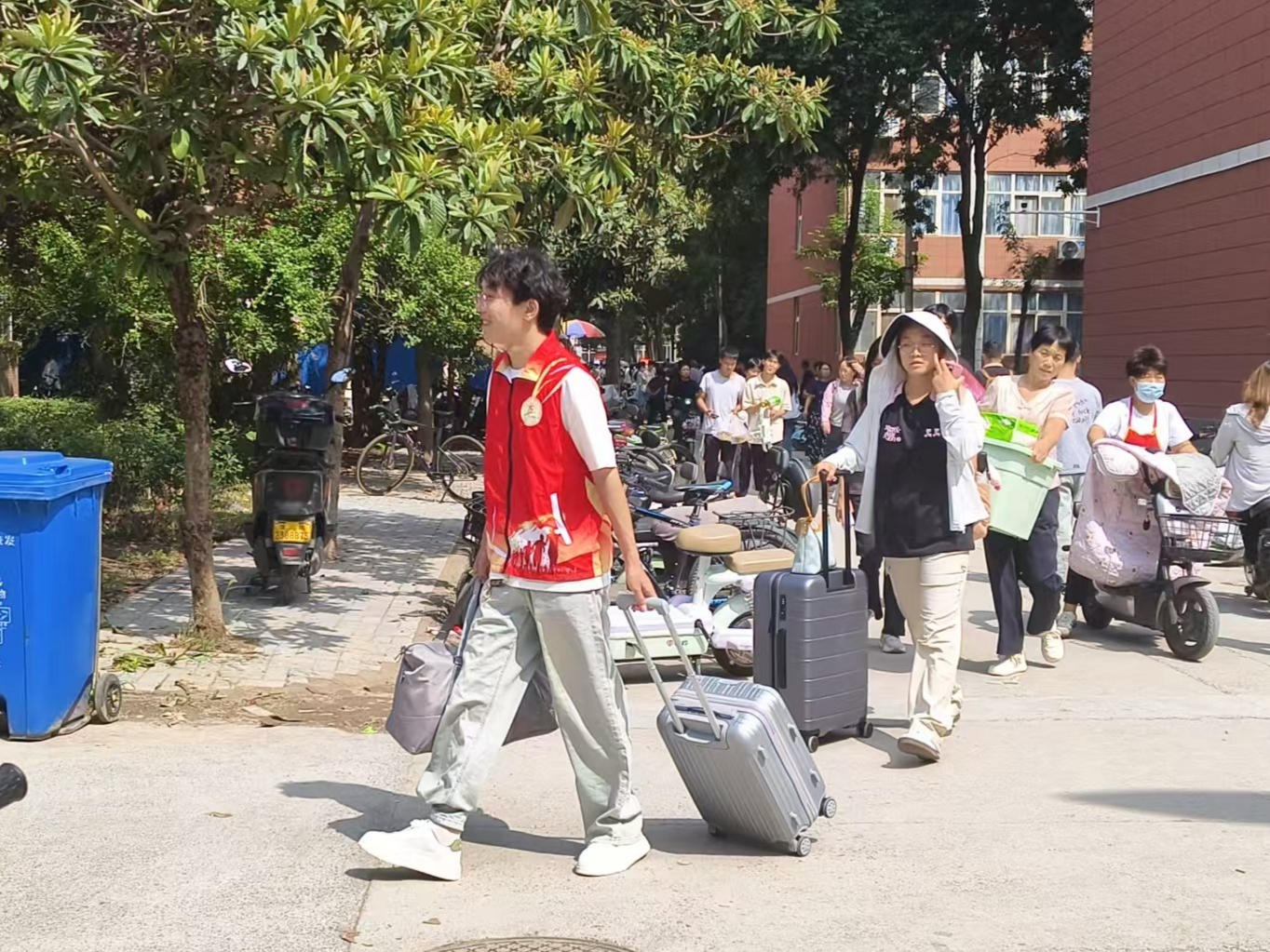 不必担心沉重的行李,“红马甲”们早已蓄势待发,承载着爱与责任的行李平稳抵达宿舍。