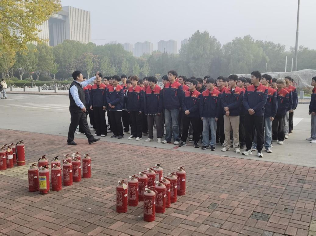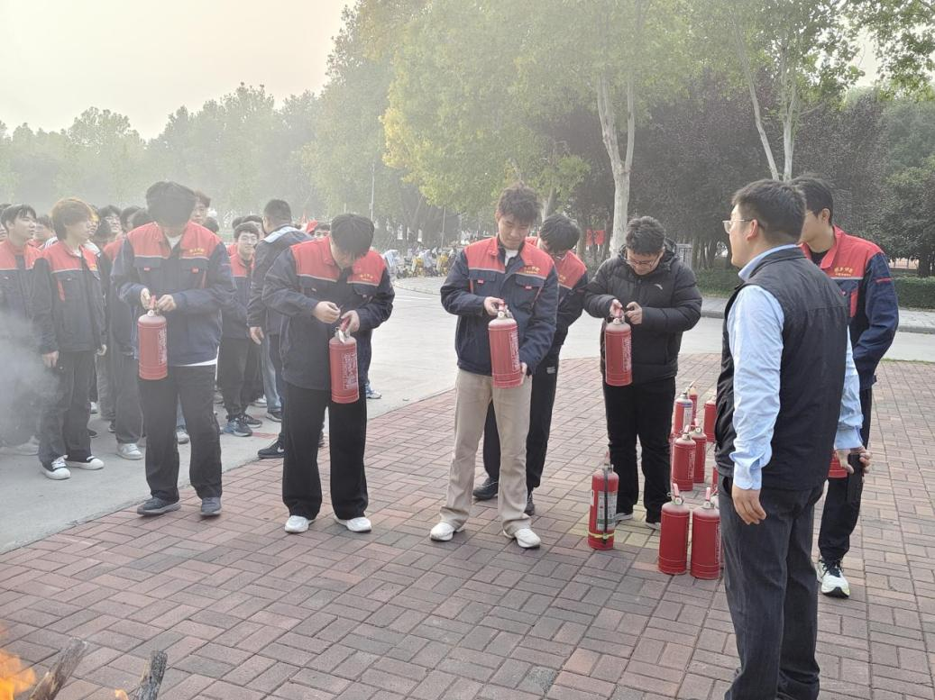 随后的灭火实操环节更是将活动氛围推向高潮。同学们在张教官的指导下,依次上前亲身体验灭火操作。起初,部分同学因紧张出现握不稳喷管的情况,但在教官的耐心指导和自身不断尝试下,大家逐渐掌握技巧,熟练按照“提、拔、握、压”口诀操作,成功扑灭明火。通过此次实操,真正让大家将消防安全理论知识转化为实际技能,收获满满,安全感也大幅提升。
