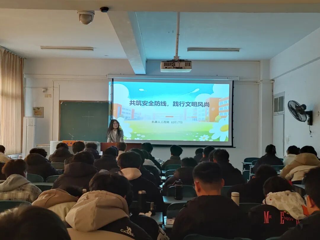 随后,辅导员聚焦消防安全教育重点内容,开展针对性讲解。在宿舍文明教育环节,辅导员结合学院宿舍检查中发现的问题,围绕宿舍卫生管理、作息规范、人际关系相处、违规行为杜绝等方面展开讲解。