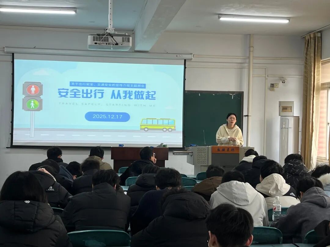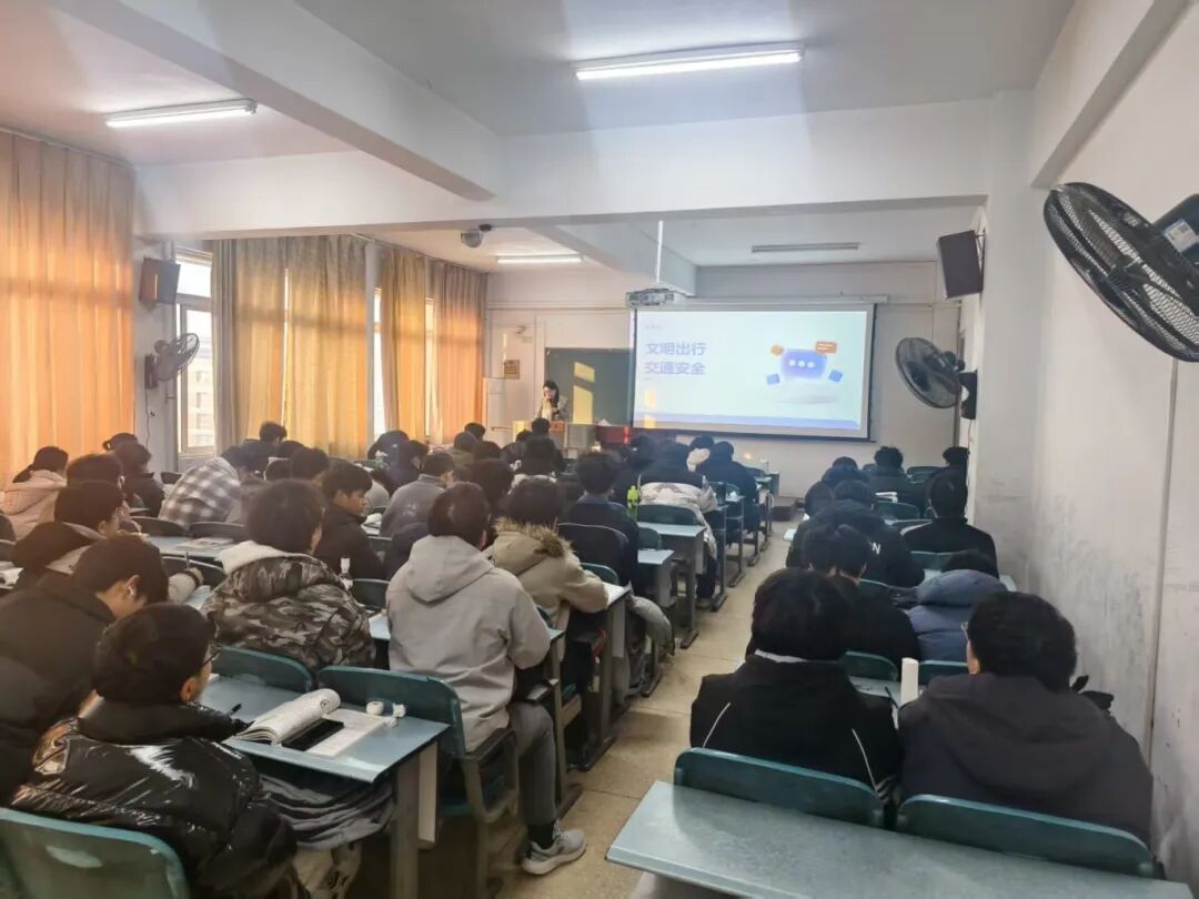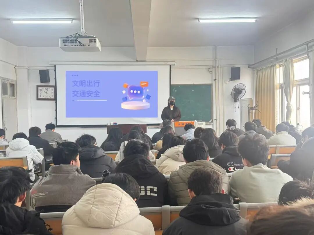 班会伊始,辅导员们结合近期全国及高校周边发生的典型交通安全案例,通过PPT展示、视频播放等形式,直观呈现了闯红灯、逆行、骑行电动自行车不佩戴安全头盔、酒后驾车等违法行为的严重危害。针对大学生出行特点,重点剖析了校园周边非机动车通行、过马路低头看手机、校外实习通勤等场景中的安全隐患,让学生深刻认识到交通安全容不得丝毫疏忽。