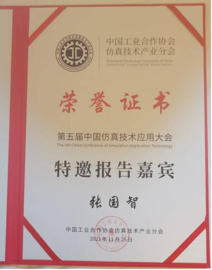 在“通用工业仿真技术应用专题论坛”平行分论坛上,张国智作了“基于3D打印技术的人工气管制造及其力学性能研究”的学术报告,报告介绍了基于3D打印技术的人工气管制造及其力学性能研究的提出背景及取得的研究成果,即人工气管的非线性大变形生物力学模型和有限元模型的构建方法、与人气管性能匹配的人工气管的 3D 打印材料配方、多层次复合结构的人工气管的 3D 打印工艺及设备方案,该成果可以解决人工气管的漏气、脱落而危及病人生命的问题,具有广阔的市场拓展及应用前景,得到了与会专家的一致认可与好评。同时与来自华南理工大学、西北农林大学、北京工业大学、 三一集团等8名专家在3D打印技术、智能制造、新能源汽车制造等领域进行了深入交流。在此次展会上,张国智教授获得特邀报告嘉宾荣誉证书和优秀论文奖(在本次大会录用的42篇稿件中排名位次为16名)。