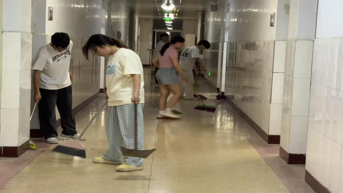 4.寝室卫生清扫劳动实践我院组织全体学生开展了"我爱我家"寝室卫生大扫除活动。各班级同学积极参与,对寝室地面、门窗、卫生间等区域进行了彻底清洁,并对个人物品进行了整理收纳。活动期间涌现出一批卫生标兵寝室.