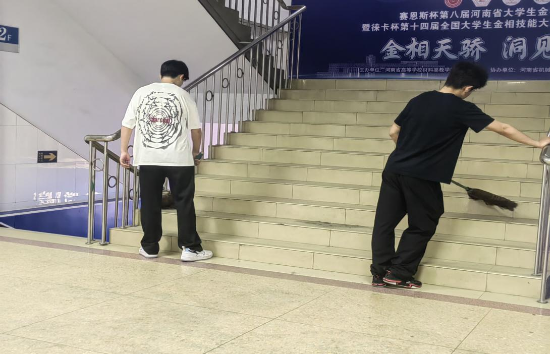 3.A06教学楼环境美化行动我院组织学生志愿者对机电工程系楼进行了全面清扫。同学们分工合作,重点清理了教室、走廊、楼梯间等公共区域,擦拭门窗玻璃,整理实验室器材。特别是工程训练中心周边的卫生死角进行了彻底整治,使教学楼环境焕然一新。
