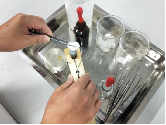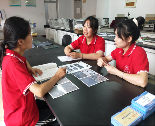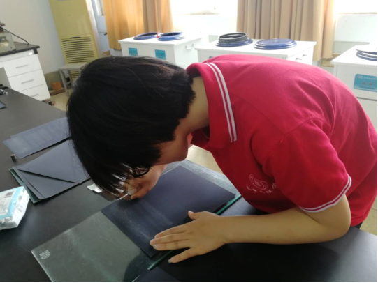 实验是严谨且复杂的,总会伴随着一些错误的出现。每当这时,队员们都会在一起反复讨论,查找原因,尽量避免不规范的操作手法,备制更好的金相组织。实践队员赵钰敏总结道:“在磨制试样的过程中,总会出现磨面不平的问题。通过多次的实践总结,我们才发现在磨制试样过程中,必须保证朝一个方向磨制,且用力均匀。如出现面不平,则需要在凸出部分打磨时调整着力使之变平,在磨下一张砂纸时,在保证旋转90度的情况下,使打磨平面尽量保持水平。”。