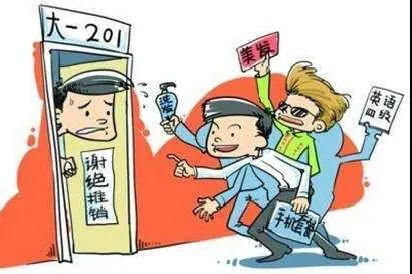 萌新入学可能会遇到上宿舍推销现象,推销一些与新生学习、生活相关的物品,比如廉价文具、手机、生活用品等,多为假冒伪劣产品。温馨提示:新生不要轻信陌生推销人员的花言巧语,要到正规商场选购用品。