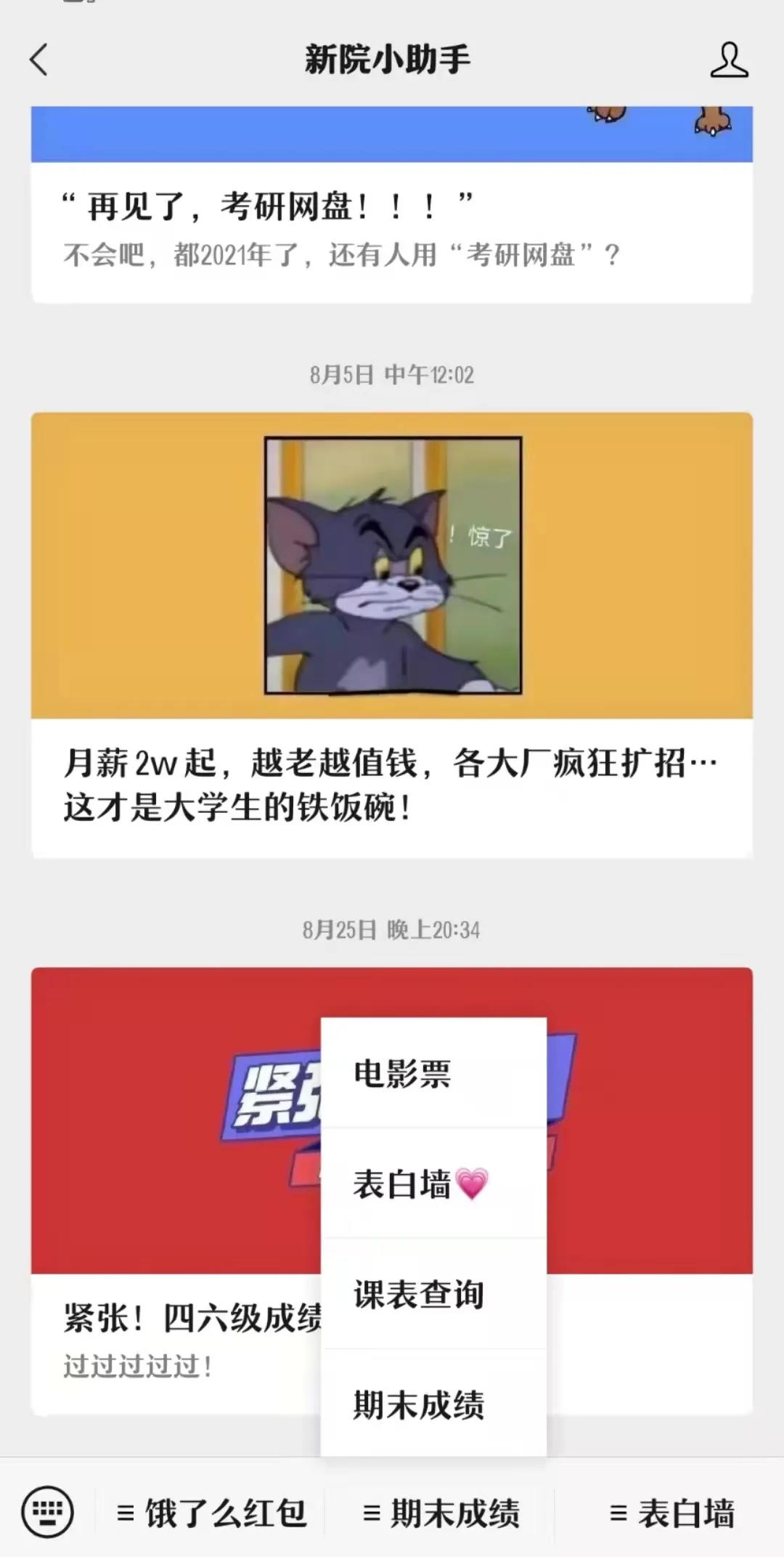 ①微信搜索“新院小助手”