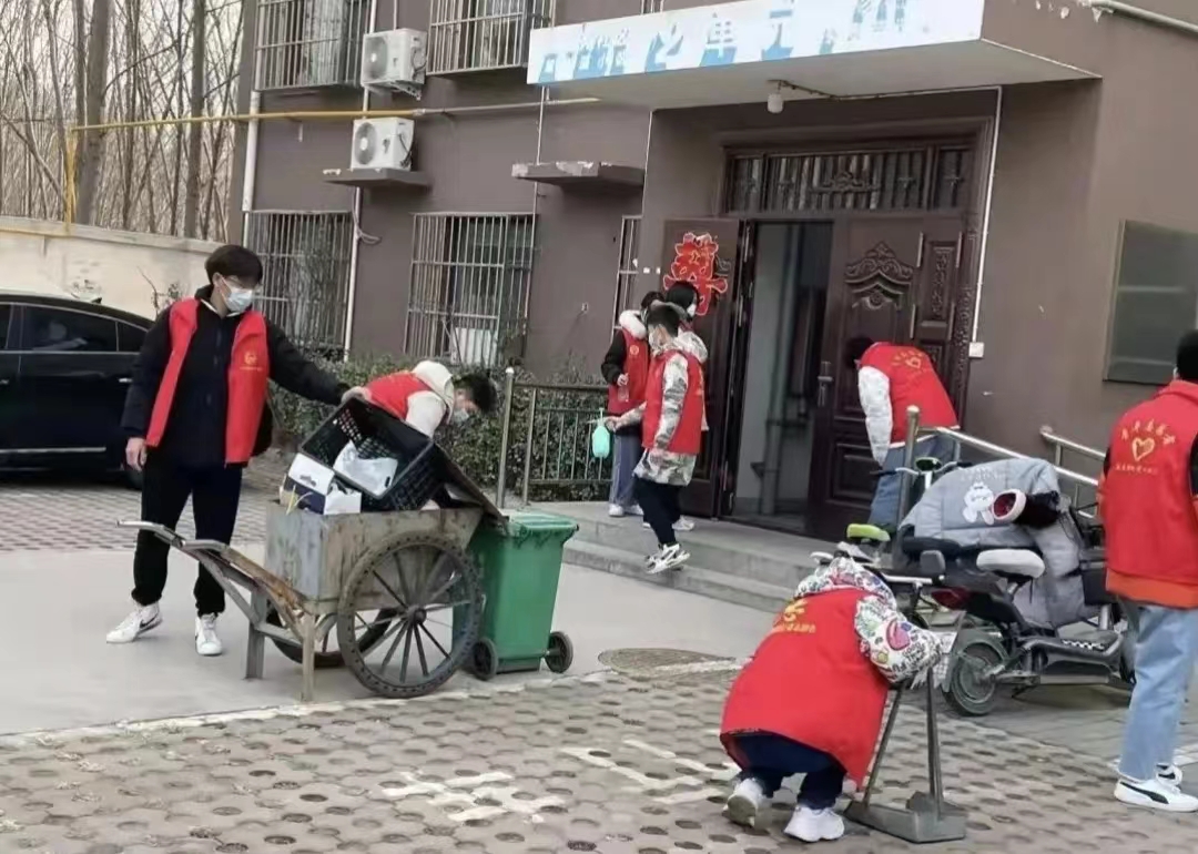 寒假期间,我参加了我们西峡县重阳镇八庙下街村举办的帮助居民打扫街道,清理垃圾,建设美好社区的社会实践活动。