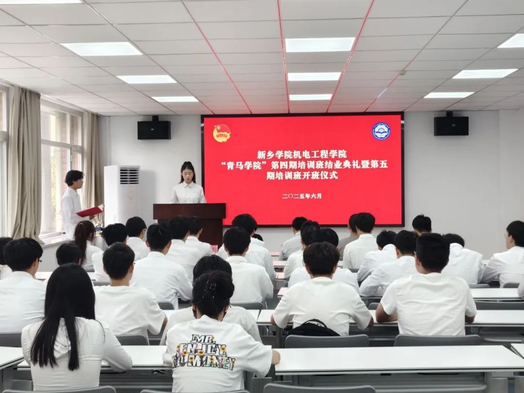 6月10日16:30,我院于A06二楼多功能会议室隆重举行"青马学院"第四期培训班结业典礼暨第五期开班仪式。活动以"高举中国特色社会主义旗帜,全面贯彻习近平新时代中国特色社会主义思想"为指引,旨在帮助大学生骨干系统学习马克思主义中国化时代化最新理论成果,深化对中国特色社会主义道路的理性认知,进一步筑牢理想信念根基,着力培养堪当民族复兴重任的时代新人,为锻造政治过硬、本领高强的青年骨干队伍注入新动能。
