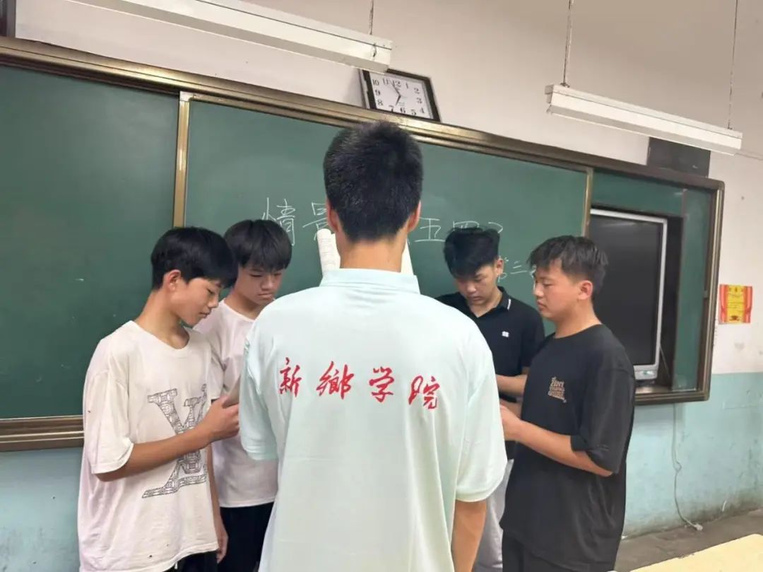 图为实践成员与学生在进行情景剧的剧情编写