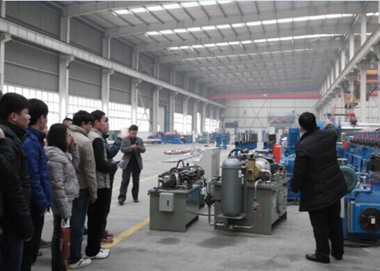 新乡天丰机械制造有限公司是板材深加工设备及生产线的专业制造商,主要产品有冷弯成型生产线、开卷纵横剪生产线及精密冷弯型材制造。是中国冷弯协会常任理事单位、“河南省高新技术企业”、“河南省制造业信息化重点示范企业”、“河南省重合同守信誉企业”,并通过ISO9001质量体系认证。 冷弯成型生产线主要应用于生产钢构业的C、Z型檩条、楼台承重模板及其屋面、墙面的维护结构彩板或保温板;高级钢构住宅的装饰、维护彩板;环保行业除尘器阳极板、阴极线;交通运输行业高速公路护栏板、车辆冷弯型材;公司致力于做中国最专业的冷弯成型解决方案提供商。公司拥有一支多年从事设计开发和具有丰富制造经验的技术队伍,高中级专业技术人才30多人,并拥有先进的大型数控龙门铣加工中心,企业领导也非常重视与我校开展项目研发及学生实习实训等方面开展合作,该企业从技术指导人员、拥有设备情况都能满足机械类专业学生实习、实训及学生毕业设计基本条件。