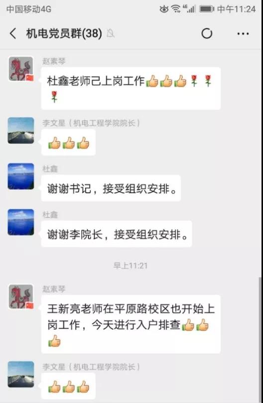 自2月1日学校组建各个校区防疫临时党支部以来,学院各党支部依照相关要求,迅速投入工作,广泛发动党员,积极宣传防疫知识,严格防控程序。一支部连黎明同志除了作为疫情联络员每天负责传达学校工作要求,统计、汇总、上报各类信息外,还担任志愿者到学校门岗值岗,这都是在爱人年后很早就开始上班,家里还有两个孩子前提下完成的;二支部杜鑫同志、王新亮同志积极加入文化路东校区、平原路校区临时党支部开展门岗执勤工作,严格出入家属院人员与车辆登记,有效控制院内人员流动,并做好解释工作;学生支部郭连心、郭晋飞、张利亚三位同志大年初三就从阖家团圆的“春节假期”转入紧张忙碌的“战时模式”,依托QQ、微信、电话等线上媒介开始了全面排查,做好防疫理论政策的宣讲,并梳理各项学业、就业信息,对学生进行精准分类指导,引导学生科学制定学习规划,停课不停学。