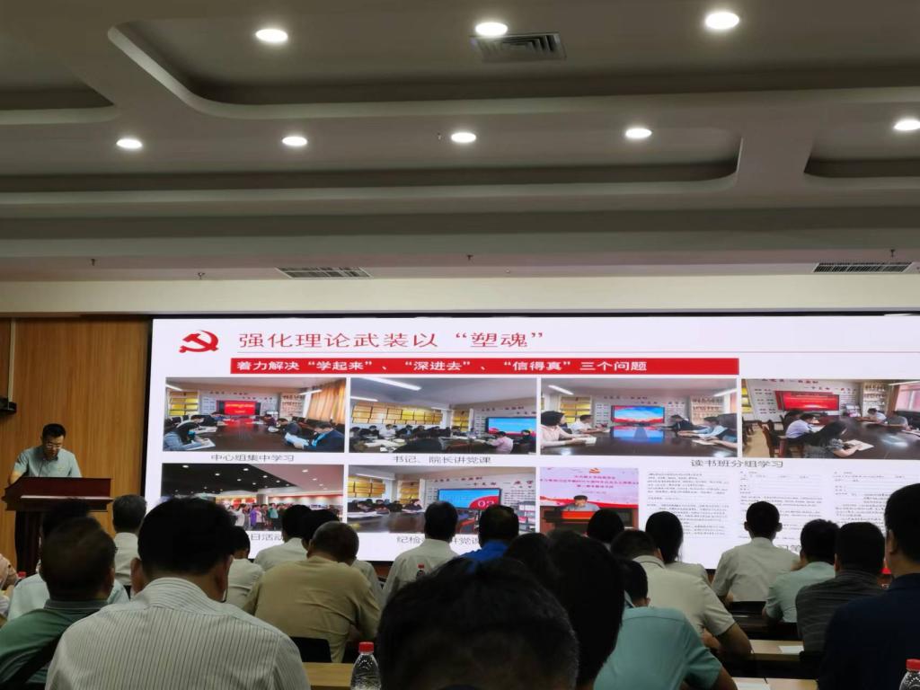 张烨同志从强化理论武装以塑魂、深入调查研究以固魂、推进事业发展以强魂、筑强战斗堡垒以聚魂四个方面,就学院的主题教育开展情况进行汇报交流。一是广泛开展“读原著、学原文、悟原理”活动,通过党委中心组带学、参与专题班强学、开展读书班领学、党员群众同学等方式,引导党员干部理解“中国共产党为什么能,中国特色社会主义为什么好,归根到底是马克思主义行,是中国化时代化的马克思主义行”,解决“学起来、深进去、信得真”的问题;二是针对不同类型、不同特点的问题有所侧重地进行调查研究,缺什么就补什么,就“专业设置、人才培养与产业发展契合度的优化设计”、“组织科研工作不够深入,高水平科研成果产出较少”、“学生中存在的极度依赖手机短视频导致人际交往能力下降、心理状况受到影响”等课题调研及成果转化进行汇报;三是汇报了学院党委以主题教育为契机,做好党建业务结合文章,着力双融双促,在审核评估、巡视整改、学科建设、党建品牌、学生培养等方面所取得的成果;四是通过强化组织功能增强凝聚力、强化模范作用增强感召力、强化党纪党风增强战斗力的方式筑强基层党组织建设,巩固学院党委党建成果。